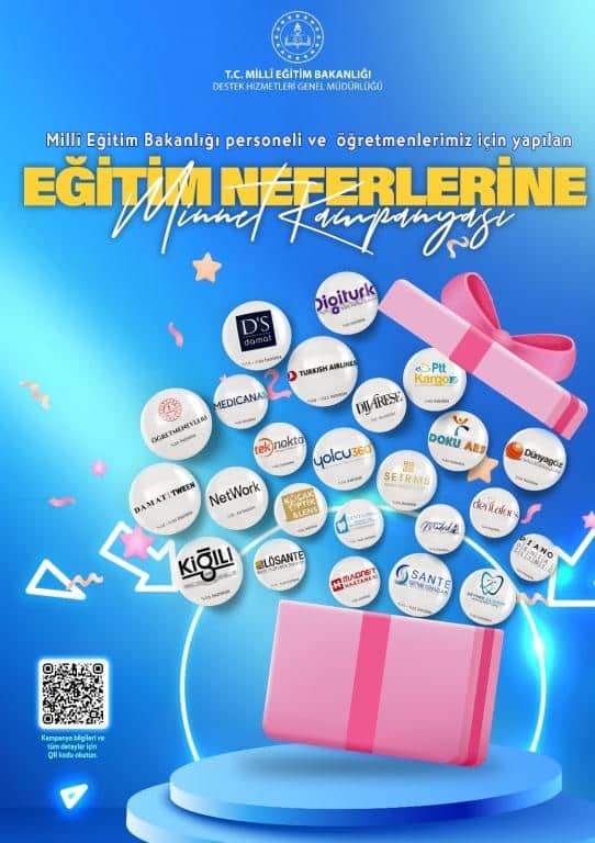 Bakanlığımıza bağlı okul ve kurumlarda görev yapan öğretmenlerimiz ile Bakanlık personelimiz için Genel Müdürlüğümüz koordinasyonunda yürütülen "Eğitim Neferlerine Minnet" kampanyası teknoloji, giyim, sağlık, ulaşım, e-ticaret vb. sektörlerden çok sayıda firma ile yapılan yeni indirim anlaşmalarıyla devam etmektedir.
